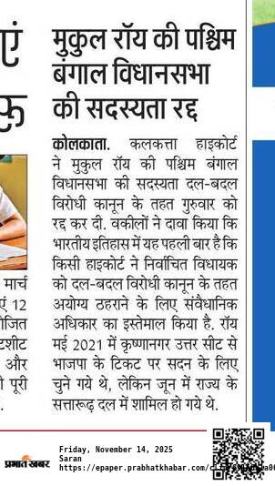 The Verdict: The Calcutta High Court cancelled Mukul Roy's membership under the anti-defection law (दल-बदल विरोधी कानून) on Thursday.
